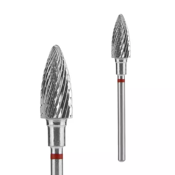 Твердосплавна фреза шишка з червоною насічкою для апаратного манікюру та педикюру Staleks Pro EXPERT — особливості: