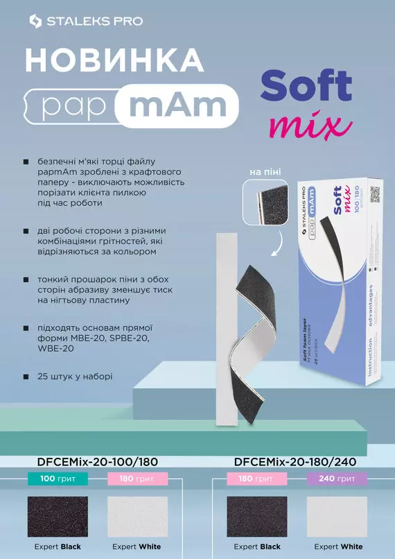 Staleks / Змінні двосторонні файли papmAm Mix EXPERT Soft / м’яка основа / 180/240 грит / 25 шт