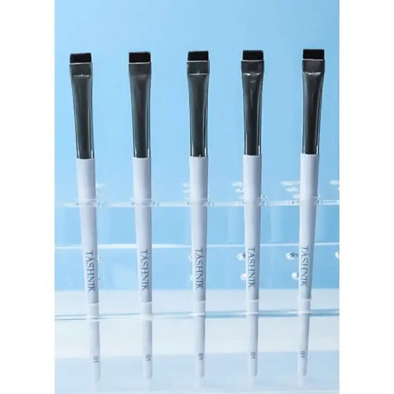 Пензлик #01 для ЧИСТОТИ ВАШИХ ЛІНІЙ Має пряму прямокутну форму, з не високою висотою ворсу . Завдяки середній пружності синтетичного ворсу та тонкому зрізу - ідеально підчищує лінії під час розмітки форми брів, не розмазуючи її. Також гарно працює з різними видами броупаст та коректорами.