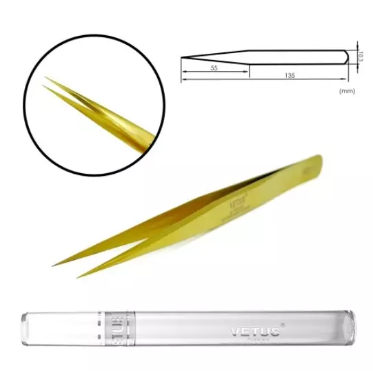 Прямой пинцет Vetus предназначен для выделения ресниц из ресничного ряда. Нарастить ресницы без использования представленного инструмента практически невозможно. Пинцет имеет прямые, острые и тонкие кончики, специально заточенные для облегчения работы с натуральными ресничками. Благодаря своей легкости он не чувствуется в руке, поэтому в процессе непрерывного наращивания кисть руки мастера не будет уставать. Совершенный дизайн не перекрывает обзор во время наращивания. Жесткость — мягкая, что позволяет не прикладывать усилий для смыкания кончиков. Пинцет изготовлен из высококачественной стали, что гарантирует его долговечность! Смыкание кончиков обеспечивают захват и снятие самых маленьких и тонких ресниц.-