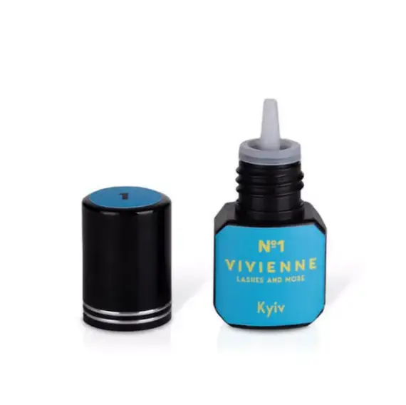 - Клей Kyiv має насичений чорний колір і рідку консистенцію, що дозволяє працювати з ним як в класичному, так і в об'ємному нарощуванні.