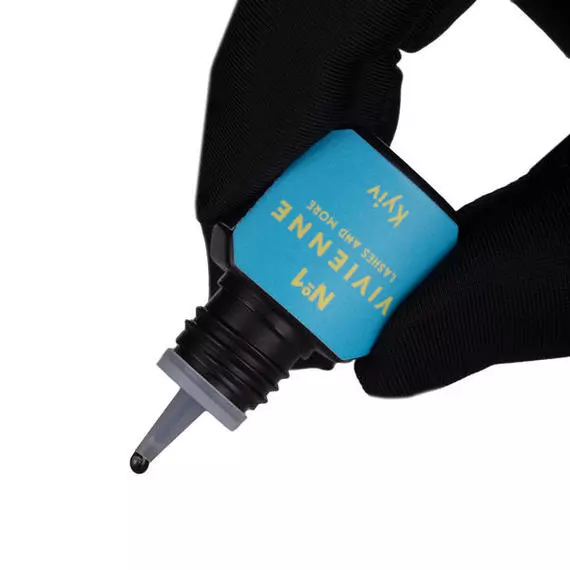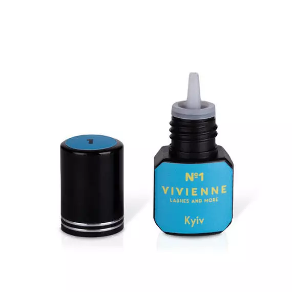 - Клей Kyiv має насичений чорний колір і рідку консистенцію, що дозволяє працювати з ним як в класичному, так і в об'ємному нарощуванні.