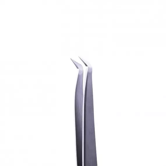 Цей пінцет спеціально розроблений для різних типів об'ємного нарощування, у тому числі для нарощування у проблемній зоні – у внутрішніх куточках очей. Ідеальне заточування та особлива форма робочої поверхні робить процес нарощування зручнішим, а результат – якісним. Оптимальна жорсткість затиску дозволяє пінцету легко утримати вії, не змінюючи їх. Завдяки мегаміцній загартованій сталі інструмент довго не вимагатиме заточування і проживе без сколів роки. Пінцет легко очищається від клею, хімічно стійкий до дезінфікуючих засобів та легко витримує високі температури при стерилізації.