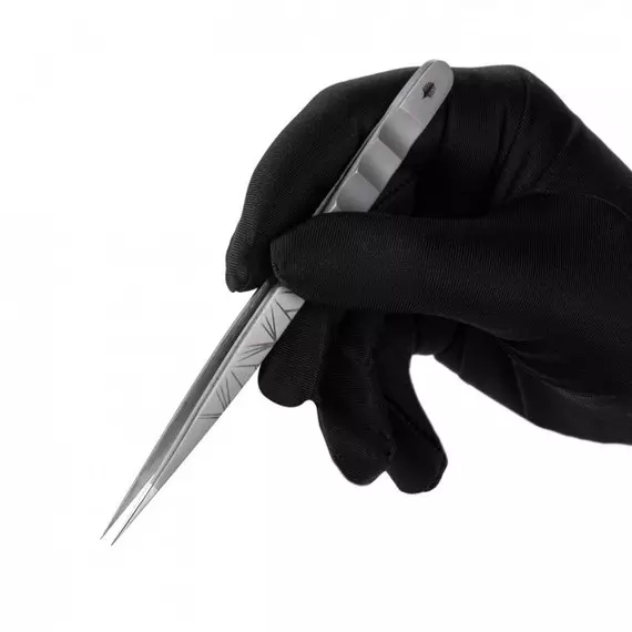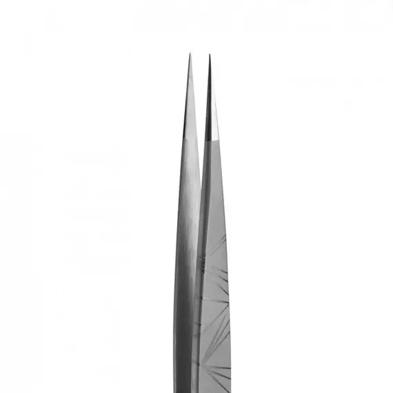 Він призначений для виділення натуральної вії з війного ряду, на яку і буде проводитись нарощування. Пінцет виготовлений із високоякісної сталі, має дуже гарне покриття. У інструмента загострені кінчики, які щільно стуляються. При цьому він абсолютно нетугий, зручний у роботі і тішить своєю відмінною якістю.