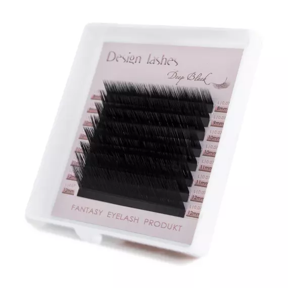 Чорні вії Design Lashes серії Deep Black мають насичений чорний колір, виготовлені з гіпоалергенного моноволокна, що легко формуються в пучок! Стрічка гарної липкості, що полегшує роботу для стрічників. На стрічці вказані Вигин, Товщина та Довжина з обох боків. Підкладка самоклеюча виготовлена на фольгованому папері, що дозволяє відривати стрічку і знову приклеювати її багато разів, при цьому не залишаючи слідів. Не викликають подразнення, не заламуються та стійкі до деформації.