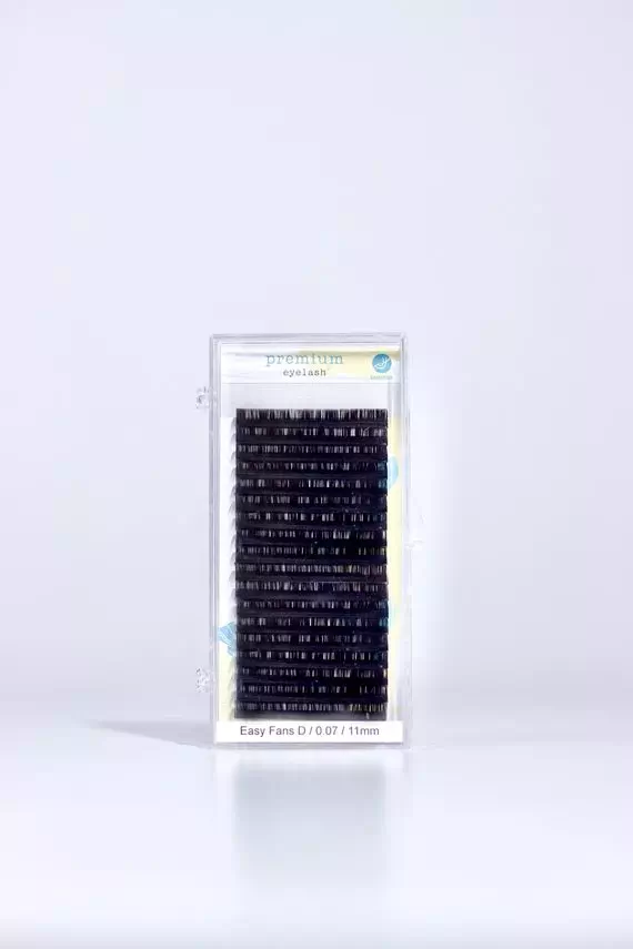 Війки Easy fan Це технологія, що дозволяє робити пучки будь якого об'єму на стрічці, всього одним дотиком. Завдяки подвійному липкому шару, основа пучка не розпадається, а сам пучок тримає форму, навіть після відпускання пінцету