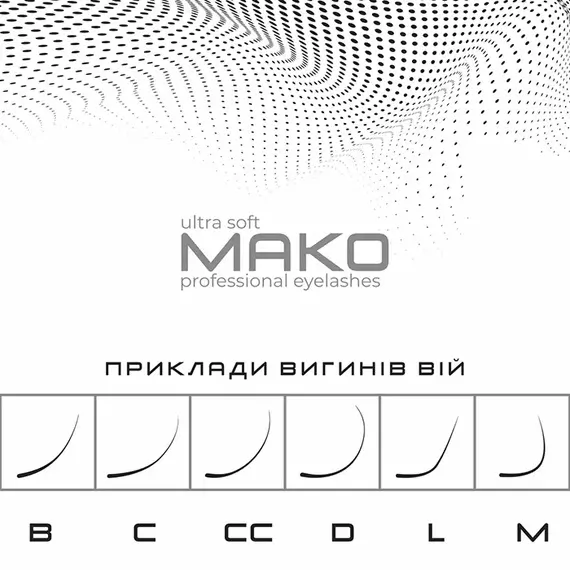 Також палетки MAKO відрізняються продуманим дизайном стрічки , яка містить інформацію про довжину вій, товщину, а також вигини.