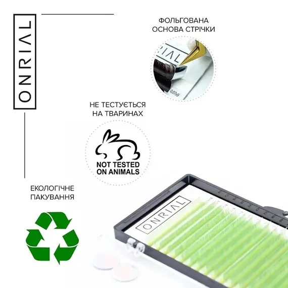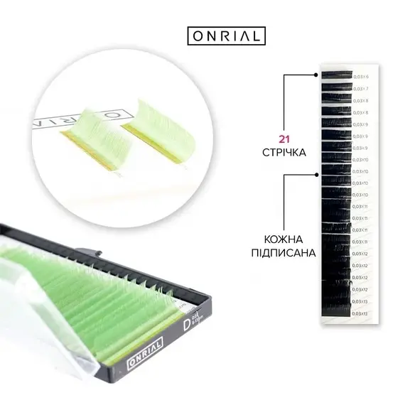 Кольорові вії для нарощування Onrial у світло-зеленому (салатному) відтінку