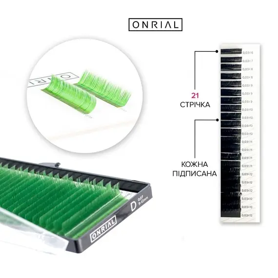 Зелені вії все частіше зустрічаються у літніх образах. Хоча всі кольорові варіації вважаються літніми, сині та фіолетові вії носять цілий рік. Але зелені оригінальніші. Часто зелені акценти замовляють руді дівчата чи любительки експериментувати із зовнішністю. Зелений і жовтий добре відтіняють карі та зелені очі.
