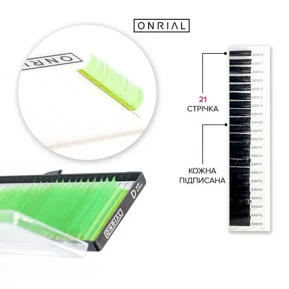 Зелені вії все частіше зустрічаються у літніх образах. Хоча всі кольорові варіації вважаються літніми, сині та фіолетові вії носять цілий рік. Але зелені оригінальніші. Часто зелені акценти замовляють руді дівчата чи любительки експериментувати із зовнішністю. Зелений і жовтий добре відтіняють карі та зелені очі.