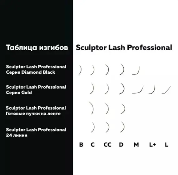 Доступна довжина вій для нарощування – від 5 до 14 мм. Матеріал пропонується в популярних вигинах B, C, CC, D і M.
