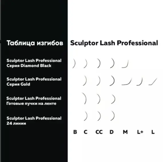 - Вії пропонуються в трендовому вигині L+, товщина на вибір – 0,07 або 0,10 мм.