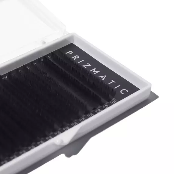 PRIZMATIC – як маленька чорна сукня. Це вії у класичних вигинах, які мають бути у кожного лешмейкера. PRIZMATIC – 20 ліній вій насиченого чорного кольору без синього тону. Ідеальні класичні вигини B, C, CC, D. Оксамитове волокно з делікатним блиском, яке дозволяє досягти максимально ніжного та м'якого нарощування. Стрічки, набиті віями настільки щільно, що створюється враження єдиного чорного полотна. Еластичне волокно, з яким зручно працювати у будь-якій техніці. Стрічка середньої липкості, що дозволяє на раз-два формувати пучки. Зміна товщини по всій довжині вії та змінена довжина щільності кінчиків для більш виразного погляду. Фольгована основа, яка зберігає липкість і може перемикатися багато разів. Маркування довжини, вигину та товщини з обох боків стрічки.