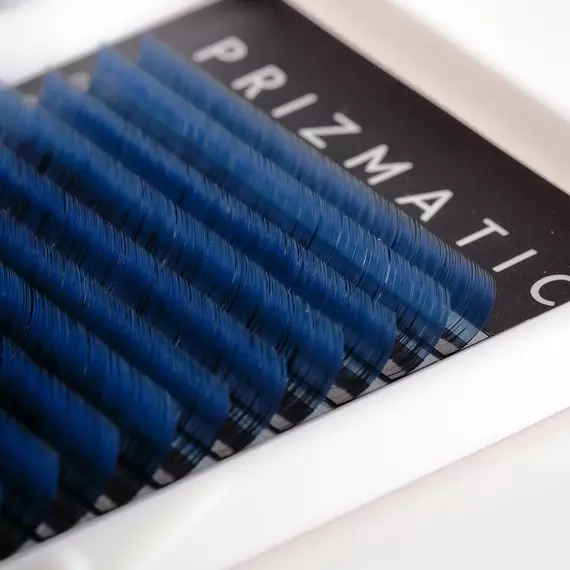 PRIZMATIC 2Т Blue – це неймовірно гарні вії для нарощування омбре від бренду SCULPTOR, що ідеально підходять для креативних робіт. В основі штучні волоски мають насичений чорний колір, який не відливає сірістю та іншими небажаними нюансами. Кінчики вій-омбре виконані в розкішному синьому відтінку, а перехід між ними та основним тоном є гармонійним і плавним. З використанням даного волокна можна легко виконати нестандартне нарощування, поглибивши погляд та підкресливши природну красу очей клієнтки.