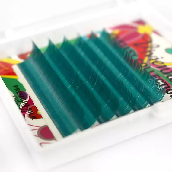 Вії мають максимально насичений колір від основи до кінчиків, дуже еластичні. Вони добре тримають вигин, який не пошкоджується під час демакіяжу чи зміні температур (сауна, спекотне літо, висушування волосся феном), а також, під час відвідування басейну. На стрічці, вії, розміщені щільно, без пробілів. Стрічки розташовані на білій підкладці, створеній зумисно для зручності майстра. Таким чином вії добре видно, а це знімає навантаження з очей. За всією довжиною стрічки розміщені параметри вій розмір, вигин, товщина.