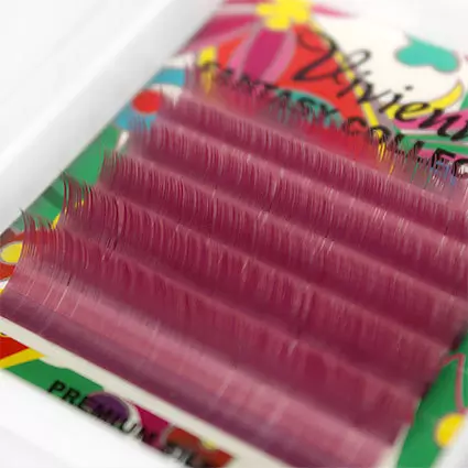Вії виготовлені із моноволокна нового покоління, легкі, мають насичений колір від основи до кінчиків. Вони не деформуються, не втрачають вигину під час зміни температур влітку, під час відвідування лазні або басейну, висушування волосся феном, а також, під час демакіяжу. На стрічці, вії, розміщені щільно, без пробілів. Стрічки розташовані на білій підкладці, зумисно створеній для зручності майстра. Таким чином, вії добре видно, а це знімає навантаження з очей. За всією довжиною стрічки розміщені параметри вій розмір, вигин, товщина.