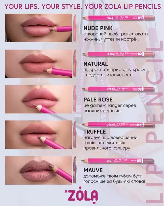 Олівець для губ Lip Pencil Zola - ідеальні губи починаються з ідеальних ліній та відтінків.
