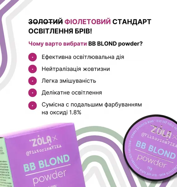ZOLA / Viktorina Vika Пудра освітлююча фіолетова для брів / BB Powder / 10г