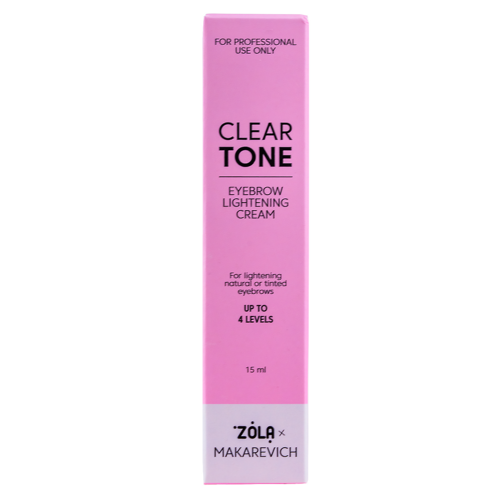 ZOLA x Makarevich Освітлювач для брів CLEAR TONE — професійний крем для контрольованого та делікатного освітлення брів на 3–4 рівні. Розроблений для роботи з натуральними та раніше фарбованими волосками: як перед фарбуванням, так і в самостійному застосуванні.